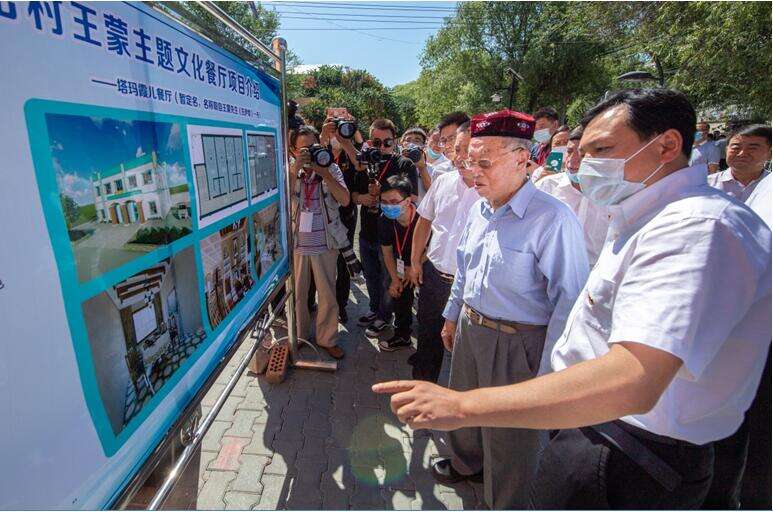 南京援疆工作组主要负责人介绍说 :“我们主要做了三个方面工作:一是深入发掘史料,讲好张骞的历史使命后续由细君、解忧公主完成的故事,重点实施了汉家公主纪念馆展陈出新,提议并配合江苏援伊前指牵头推进了大型歌舞剧《解忧公主》的创作、巡演,受到国家文旅部主要领导好评。二是围绕王蒙先生在巴彦岱的故事及其茅盾文学奖作品《这边风景》,规划建设王蒙文学小镇。安排援疆资金建设王蒙书苑、塔玛霞儿餐厅;利用乡村振兴资金实施王蒙书屋修缮、“这边风景”街巷改造提升;争取专债资金建设“民族团结学院”;同时,还引入电视剧《人世间》出品团队,创作拍摄《这边风景》电视剧,在巴彦岱村调整文化用地70亩预留为影视基地,拍摄完成后作为旅游景点长期运营。此外,我们还策划举办了王蒙研究全国联席会议首届学术年会暨“名家写伊犁”创作采风活动,王蒙先生邀请一批知名作家宣传伊犁并讲授了一堂生动的党课,编辑出版《这边风景——名家写伊犁诗歌散文集》。三是围绕新疆多民族文化,建设石榴花展览馆(多民族文化展示馆)、其文化旅游街区、美食演艺中心,打造锡伯车马店、汉人街杨柳青历史文化街区、多民族民宿集群、六星街音乐庭院(世界最大手风琴)、苏阿勒玛塔村哈萨克民俗村、南岸骑射文化培训基地,让游客感受不同民族的建筑、服饰、音乐、舞蹈、民俗、美食文化等。通过这三张名片,向全世界展示新疆的经济社会发展、特色多元文化、民族团结进步,彰显中华文化和中华民族视觉形象。”