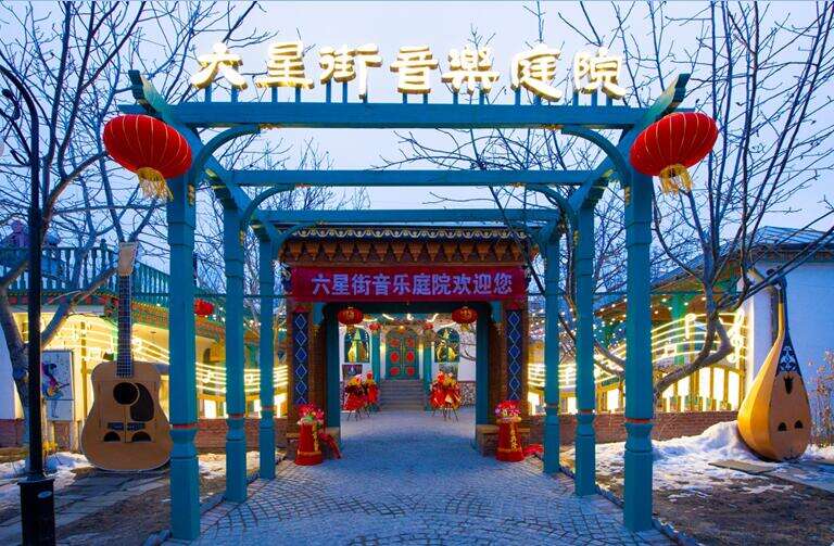 南京援疆工作组经过多次深入调研后,将六星街定位于“音乐小镇”,挖掘弘扬多民族音乐文化。2020年,南京援疆工作组继民俗文化陈列馆、手风琴珍藏馆建好后,又在六星街打造了音乐庭院。整个音乐庭院民族风情浓郁、装修精致唯美,大厅摆放着一台委托江苏江阴金杯安琪乐器有限公司设计制作的手风琴,比目前世界之最意大利那台高出13公分、长了20公分,这也是南京援疆工作组赠送给六星街的礼物。