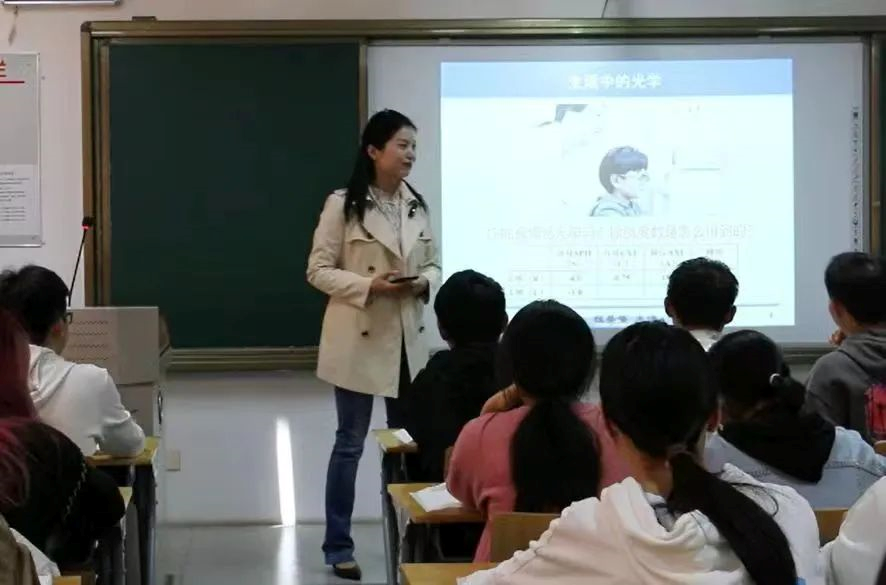 《光学》课堂上,程晏蓓老师清晰的授课思路、完美的内容过渡、精美的课程课件、和谐的师生互动以及独特的人格魅力,都让我们不由自主地沉浸其中。站在三尺讲台上的她永远有着饱满的热情与活跃的思维,自信从容的举止体现了她深厚的教学功底,不慌不忙的引导展现了她对课堂的掌控能力,恰到好处的点拨透出了她对知识的理解和运用。