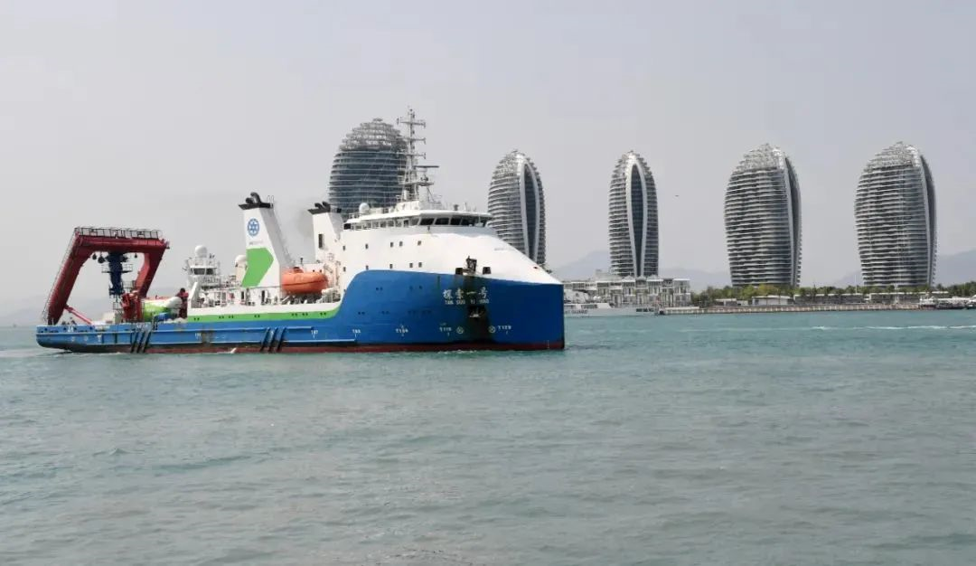 △ 3月11日,“探索一号”科考船携“奋斗者”号全海深载人潜水器抵达三亚。(图源:新华社)