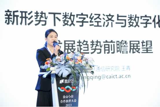 中国信通院产业与规划研究所副总工程师王青、金山办公CEO章庆元、金山办公高级副总裁姜志强等出席本次大会并发表演讲。