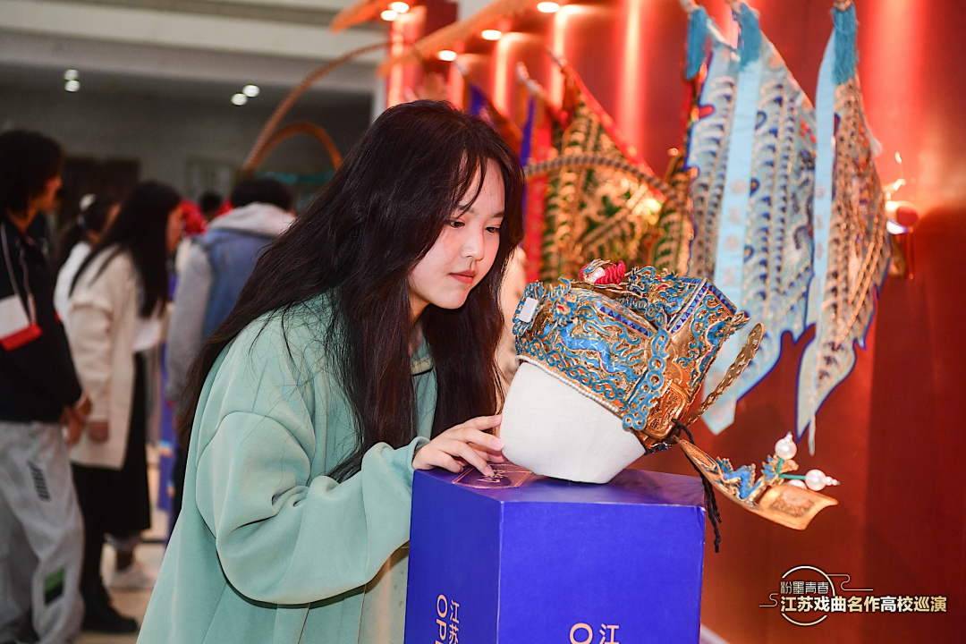 在江南大学校园内,戏曲头饰展、脸谱展、青春留言板等互动区域人头攒动。巡演掀起的校园戏曲热潮意味着它是被青年学子肯定和需要的。