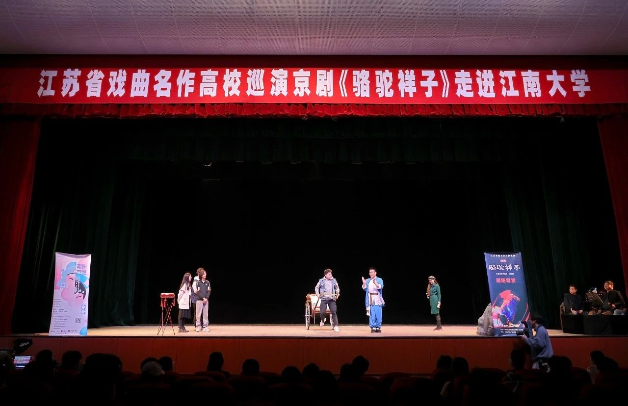 现代京剧《骆驼祥子》是江苏省演艺集团京剧代表性剧目之一,为在进校园活动中为广大观众呈现更完美的演出,主创团队对作品的表演、音乐、舞美等方面进行了部分调整,在一些细节上甚至打破重来,使演员表演更为生动感人,音乐表达更加浸润心脾,舞美呈现更添唯美意境,转场更为行云流水,主题表达更加深入准确。其优美的唱腔、感染力十足的音乐、干净极简的舞美、打动人心的故事,征服了江南大学演出现场所有观众,赢得了广泛的赞誉和口碑。