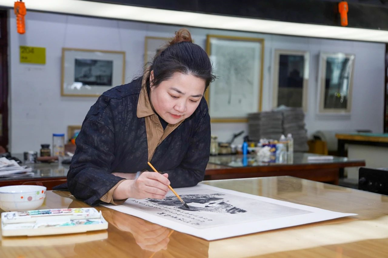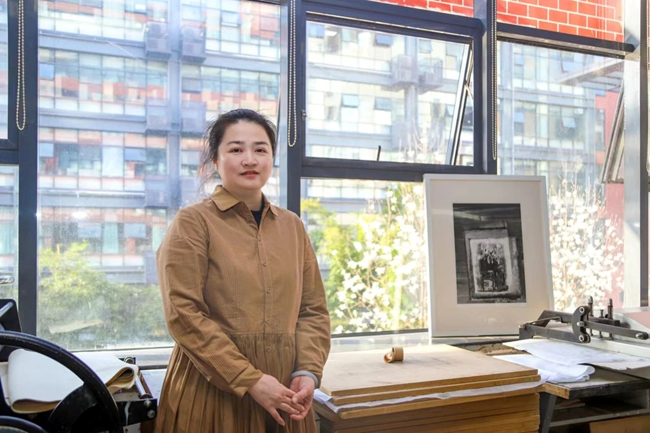 女性对自然和生活细腻的观察帮助她在版画领域不断深耕。借助这种天生细致的洞察力,她总能定格自然中美好的细节。树隙中透出的光影、梧桐树叶子的纹理和水面上荡漾的波纹等等总能让她灵感涌现。同时,在版画制作的过程中,她也会运用这种能力,让材料更加细致且恰当地服务于作品。