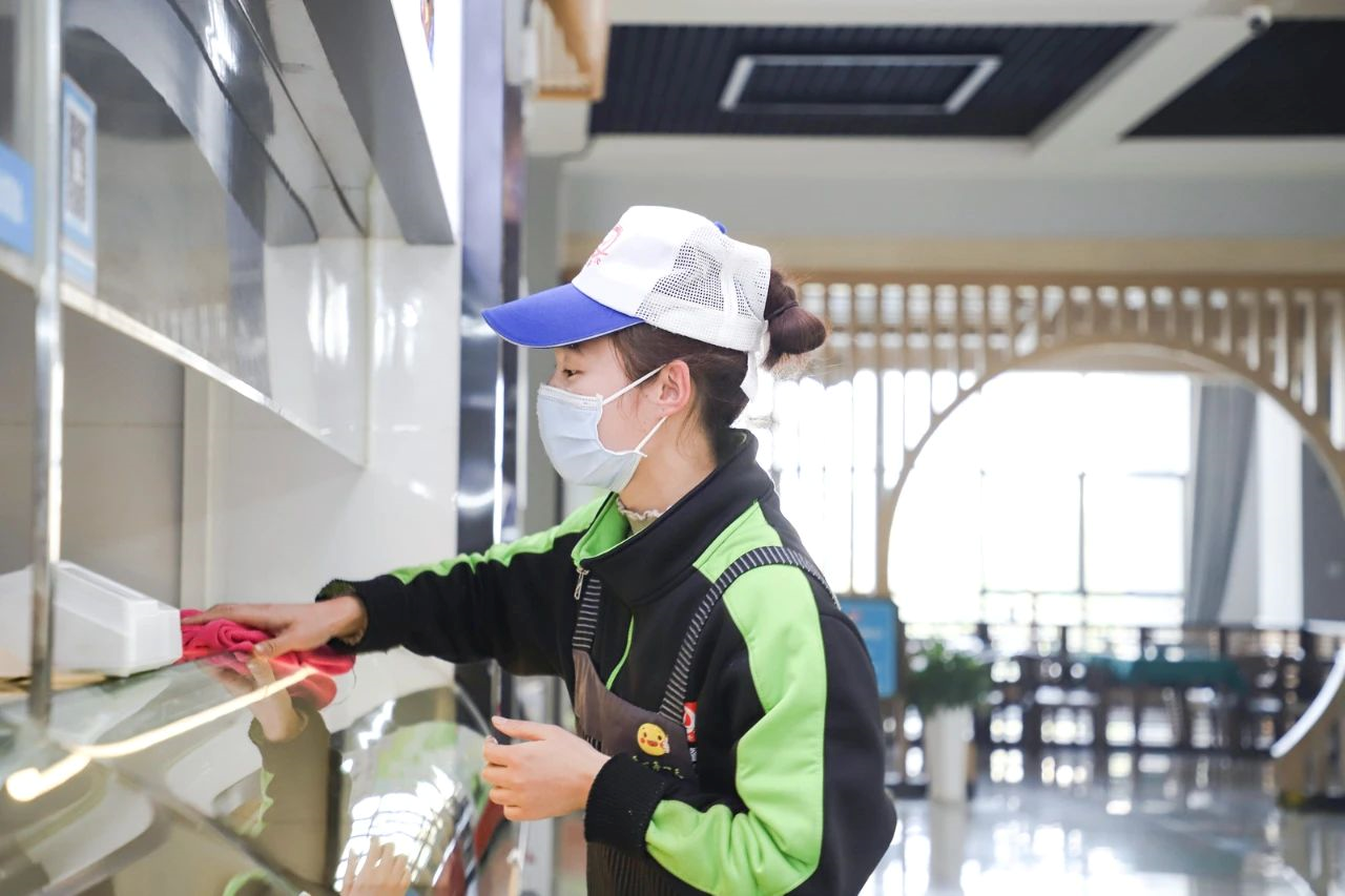 今年是杨盼在南湖食堂工作的第二年。刚从事这个行业的时候她还比较年轻,对以服务为主的餐饮比较抵触,但是坚持下来后她渐渐从这个行业获得成就感与满足感。