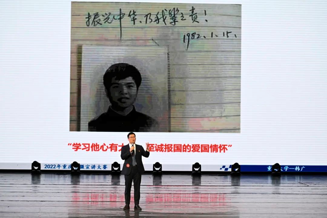 2022年9月26日,重庆市“学习新思想 展现新作为 喜迎二十大”微宣讲决赛现场,韩广作为第4个选手出场。演讲结束后,台下掌声阵阵。