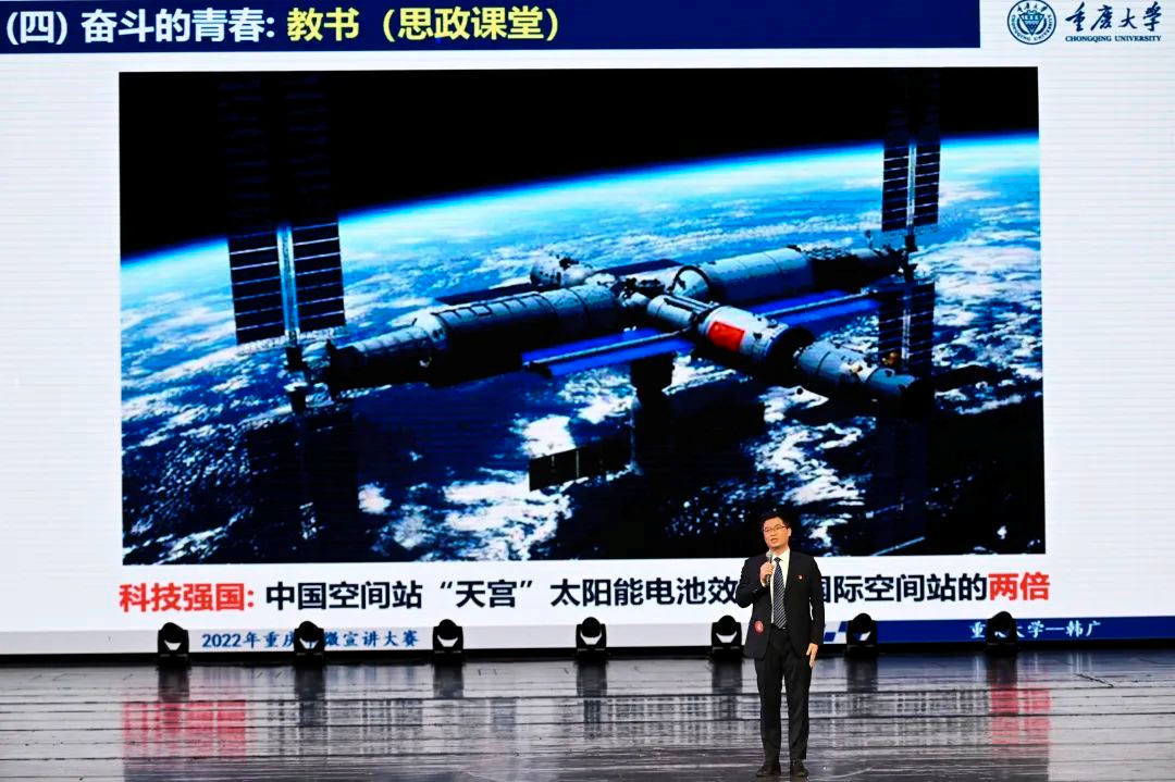 韩广在重庆大学第八届青年教师教学基本功比赛荣获一等奖,图为比赛现场