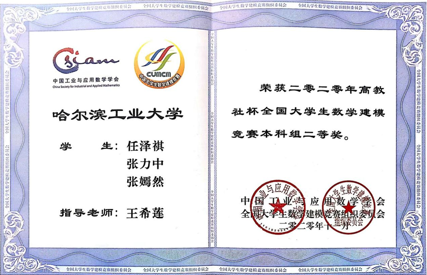 任泽祺获得全国大学生数学建模竞赛二等奖等3项学科竞赛国家级奖项,科创竞赛累计获得金奖2项、银奖2项、铜奖3项,并作为唯一一名本科生在2021有色金属新材料大会上进行汇报。