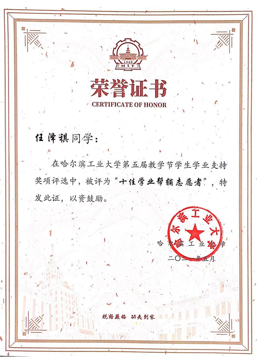 学业帮辅工作室的经历让任泽祺感受到了帮助别人的快乐。她积极参加高校科学营、“小红帽”迎新、核酸检测等志愿服务,时长累计300余小时。