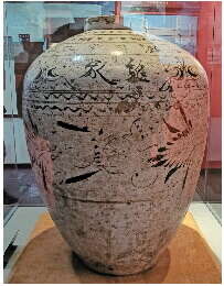 上面说了酒的营销和控制饮酒的广告,下面再说说其他产品的营销广告。邯郸博物馆藏有一件清康熙八年烧制的白地褐彩瓷坛(如图④)。坛上写:“康熙八年,造下此坛,出自山西,郡名陵川,附城镇上,西南子山。放酒酒好,成(盛)醋醋酸,盛水不漏,淹(腌)菜菜咸,买上一个,居家喜欢。诸般都放,放密(蜜)更甜。人人爱买,不论价钱,使了想使,胜活十年,请君先看,许多诗言。我要讨价,细细五钱,可好可好,直(值)钱直(值)钱,休走休走,快还快还,真正白货,去而何南(难)。”前几句交代了此坛的制作地点在山西陵川县附城镇,这几个地点现在还都有。山西晋东南地区怎么也有磁州窑?前面已经说过,磁州窑是民窑,其装饰技法和制作风格为百姓喜闻乐见,全国许多窑口都仿烧磁州窑系列产品,与磁州一山(太行山)之隔的晋东南窑厂当然也不例外。再后面就是“神夸”该坛的功能了,夸得这口坛如同“哆啦A梦”的口袋,放上啥都能心想事成。时间、地点、“神功用”都交代清楚了,后面的词就是让你消费了,“我要讨价,细细五钱。”意思是这个器物只卖五文钱。“可好可好,直(值)钱直(值)钱。休走休走,快还快还,真正白货,去而何南(难)。”意即这样的价钱买这个货物,简直就是白给您的了。走是太容易了,但是过了这个村,就再也没有这个店了。这一番神操作下来,你不买都心不甘。这些词不仅对瓷器起到了装饰的作用,而且读起来朗朗上口,通俗易懂,起到了宣传营销作用,同时还把市井之间买家与卖家讨价还价的场面描绘得淋漓尽致,字里行间透露出淳朴的民窑气息和民俗文化特色。