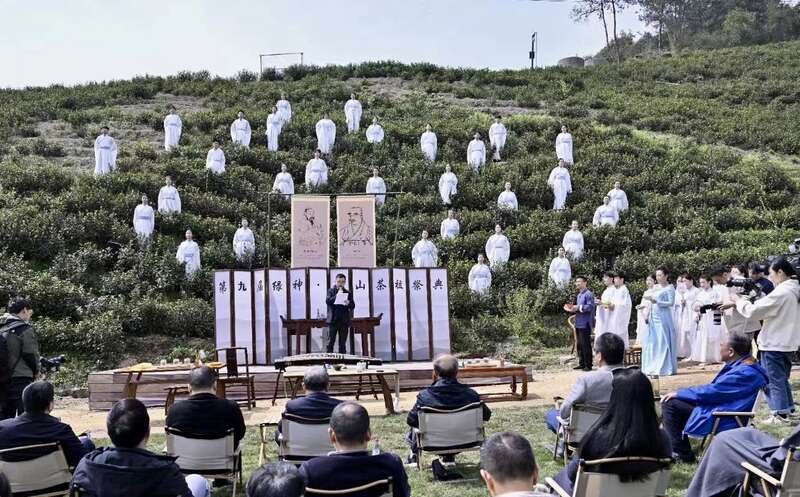 中国青年报客户端杭州3月27日电(中青报·中青网记者 李剑平)今天径山,万物吐翠,新茶飘香,第九届径山茶祖祭典活动在浙江省杭州市余杭区径山举行。敲击茶鼓、躬身行礼,茶农们以虔诚的方式祭拜径山茶的“鼻祖”——国一大觉禅师法钦和唐代茶学家陆羽。