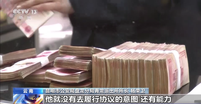 云南省昆明市公安局盘龙分局青龙派出所所长 杨荣卫:从他的资金流向上来看,就没有去履行协议的意图,还有能力,所以说他非法占有这一点就很明显。