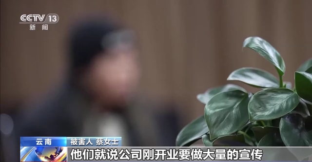 被害人 蔡女士:他们就说公司刚开业,要做大量的宣传,要口碑,当时很热情的,又是给你倒水,又是给你吃糖,又吃水果啥的。