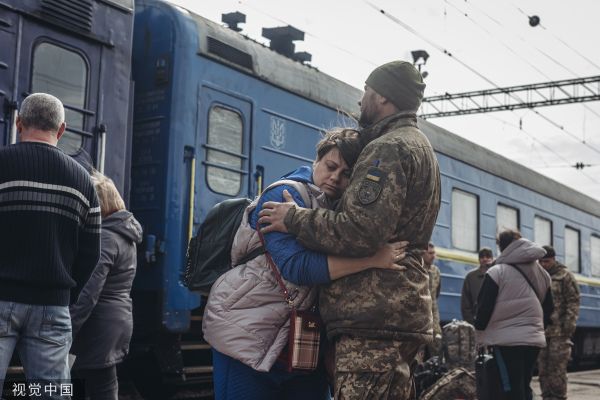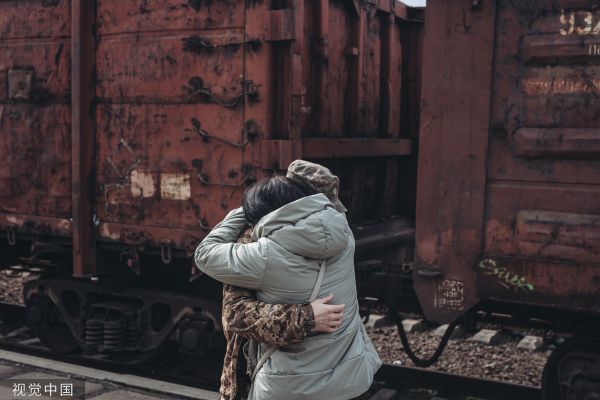 俄乌冲突持续 乌克兰士兵车站惜别亲人