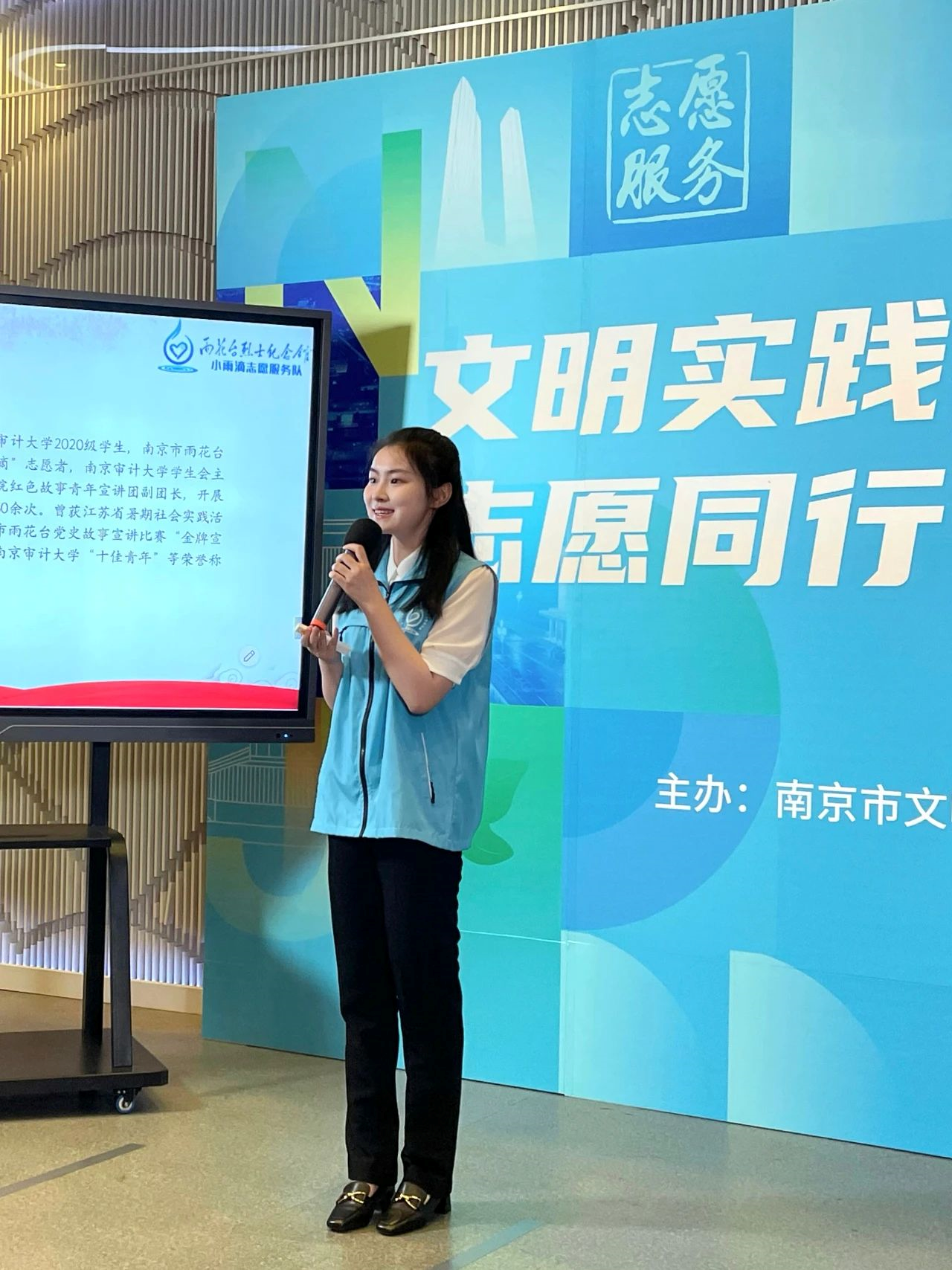 为让故事还原历史、接近真实,她收集整理了大量史料,向史学专家和南审思政教师请教交流,磨砻淬励,数易其稿,形成红色故事宣讲稿《永是勇士》,在南京市党史故事宣讲大赛上获评“金牌宣讲员”荣誉称号,宣讲音频被“中国雨花台”收录在喜马拉雅“赤承·百年”专辑,播放量千余次。