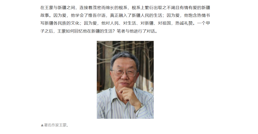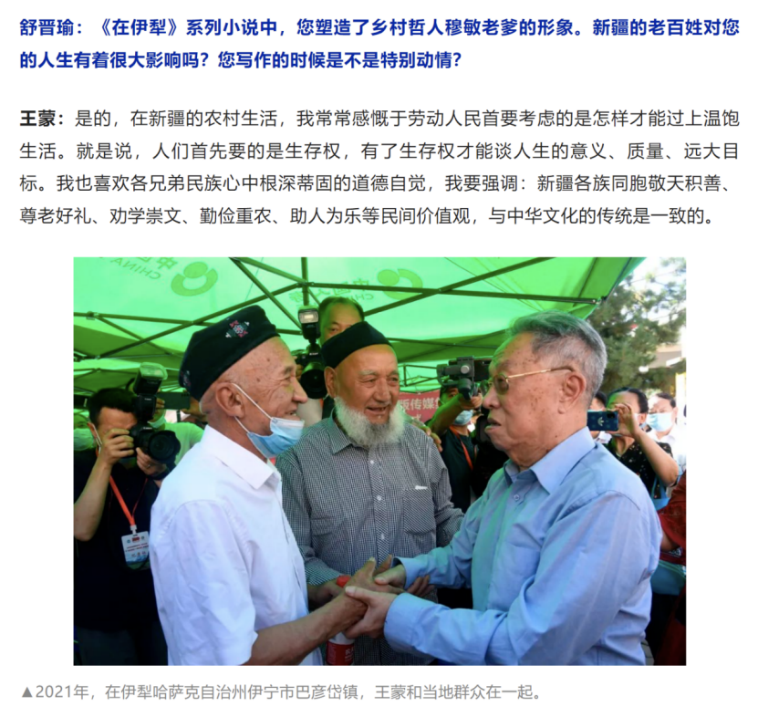 鲁迅说:“创作,总根于爱。”这句话用于概括王蒙之于新疆题材系列作品实在贴切。2023年,是王蒙从事文学创作70周年,距他远赴新疆也有60年。那片辽阔大地上色彩丰盛的生活,早已融为他积极乐观、幽默自信的生命底色,更成为他广饶多姿的文学创作资源。