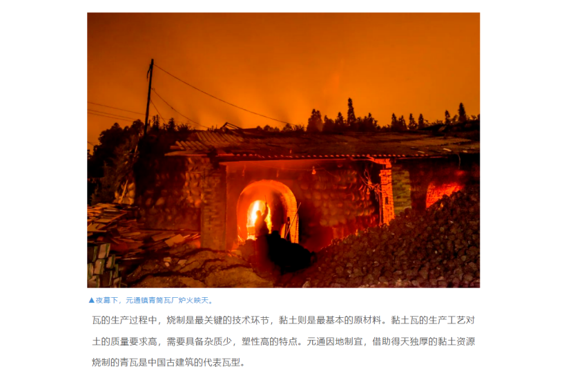 明代宋应星《天工开物》中有撰文“凡埏(shān)泥造瓦,堀地二尺余,择取无沙黏土而为之”。四川崇州元通镇地下黏土资源丰富,适宜烧制成瓦,因此这里从秦汉时就盛行制瓦,南宋便利的水陆交通更促使这里出现大量烧制瓦片的瓦窑。
