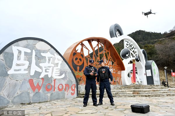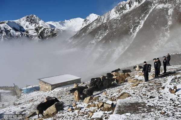 2023年3月23日清晨,四川阿坝,海拔5040米的巴朗山“熊猫王国之巅”白云如海、雪山连绵,云海之上,有着“熊猫卫士”之称的阿坝州公安局卧龙分局卧龙派出所民辅警开展着日常的巡逻工作。