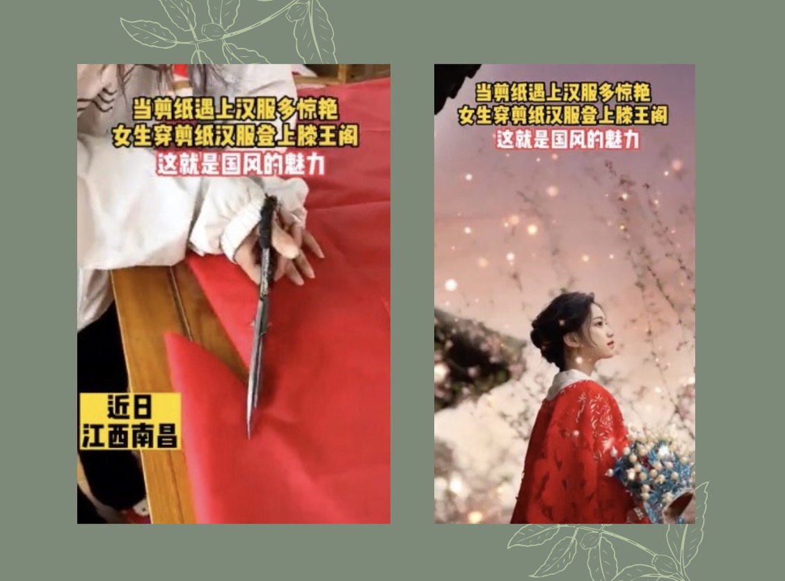 中国人的故事|国风的魅力!女生穿剪纸制作的汉服登滕王阁
