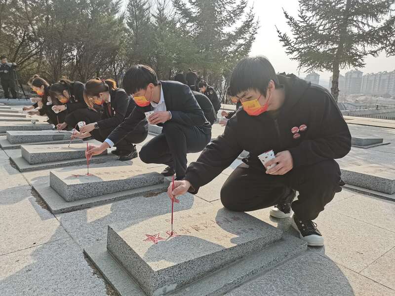 在振安区烈士陵园,“新时代向上向善辽宁好青年”、团振安区委挂职副书记温常卿为青年们讲述了“五龙山下捉飞贼”的红色故事。在“我为烈士墓碑描红”志愿活动中,青年们细心抹去纪念碑和墓碑上的灰尘,端起颜料,拿起毛笔,认真对风化褪色的铭文碑文进行描摹填漆,每一笔每一划,都凝聚着对革命先烈的崇敬之情。