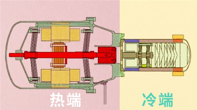 通过外部加热,机器内部的氦气便会吸热膨胀,并在冷端收缩,将温差变成自己动力的源泉。