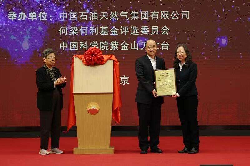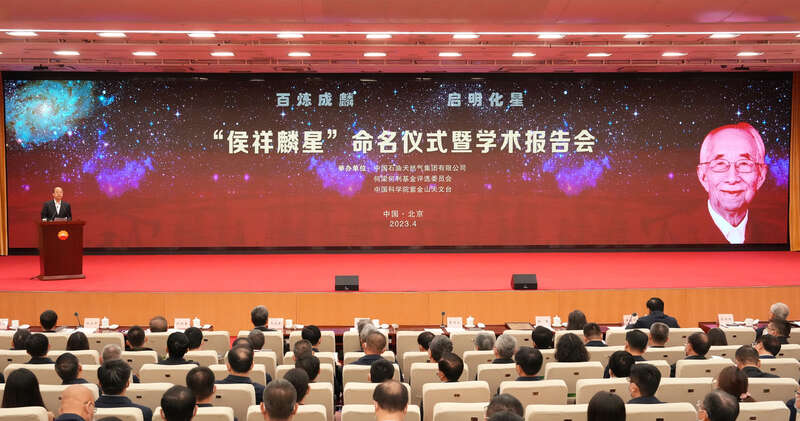 中国青年报客户端北京4月4日电(中青报·中青网记者 先藕洁)百炼成麟,启明化星。由中国科学院紫金山天文台发现的、编号为 236845 号小行星被正式命名为“侯祥麟星”,宇宙中又多了一颗以中国科学家名字命名的小行星。今天,在北京举办的“侯祥麟星”命名仪式暨学术报告会上,何梁何利基金信托委员会主席、评选委员会主任、国家科技部原部长朱丽兰,中国工程院院士、中国石油集团董事长、党组书记戴厚良共同为“侯祥麟星”命名铜匾揭幕。