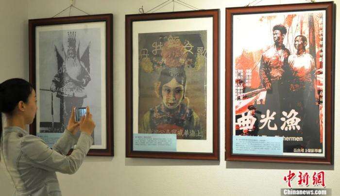 图片《定军山》、《歌女红牡丹》、《渔光曲》等代表中国电影多个“第一”的电影海报吸引参观者。翟羽佳 摄
