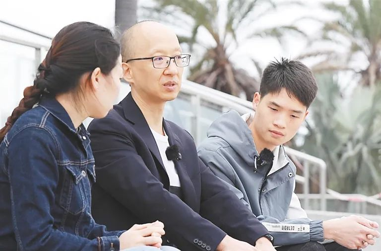 段玉聪(左二)和学生交流。受访者供图