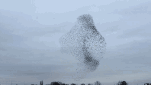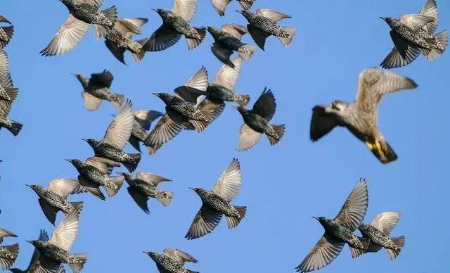 在讲座的主体部分,帕里西详细介绍了其团队关于椋鸟群集体行为的研究。团队注意到,由数百只椋鸟构成的椋鸟群在受到鹰隼攻击时,会迅速调整鸟群的形状,避开鹰隼攻击以减少损失。在此过程中,每只椋鸟实际上只会和其附近的椋鸟进行信息交流。这种局域的信息交流如何以极快的速度影响整个鸟群的行为,便成了一个有趣的复杂系统问题。科学家们希望解答这一问题,并且能够在计算机上模拟鸟群和类似动物群体的集体行为。