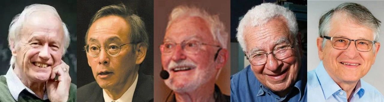 左起:诺贝尔物理学奖得主安东尼·莱格特、朱棣文、海因里希•罗勒、默里•盖尔曼、冯·克利青,他们都曾来到华中科技大学讲学。