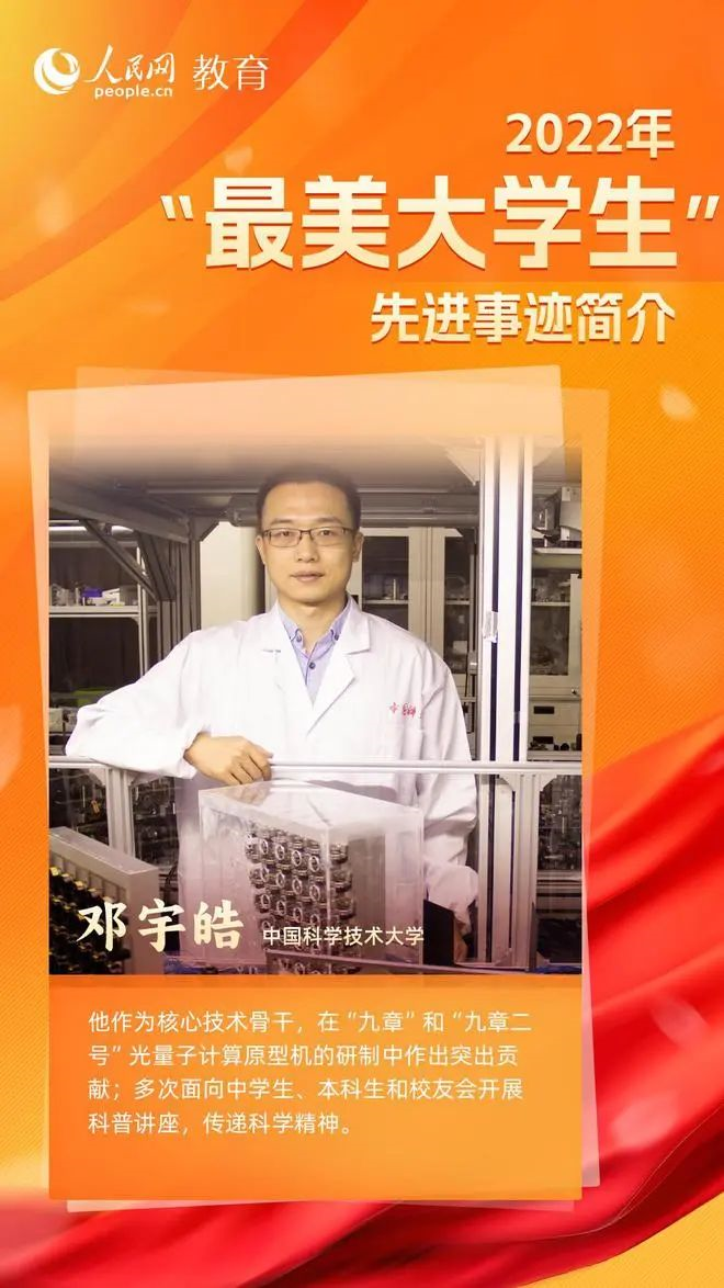 把青春奋斗融入祖国的科技事业,是中国科学技术大学物理学院博士生邓宇皓的理想。作为核心技术骨干,他在“九章”和“九章二号”光量子计算原型机的研制中作出突出贡献,助力我国进入量子计算世界第一方阵。
