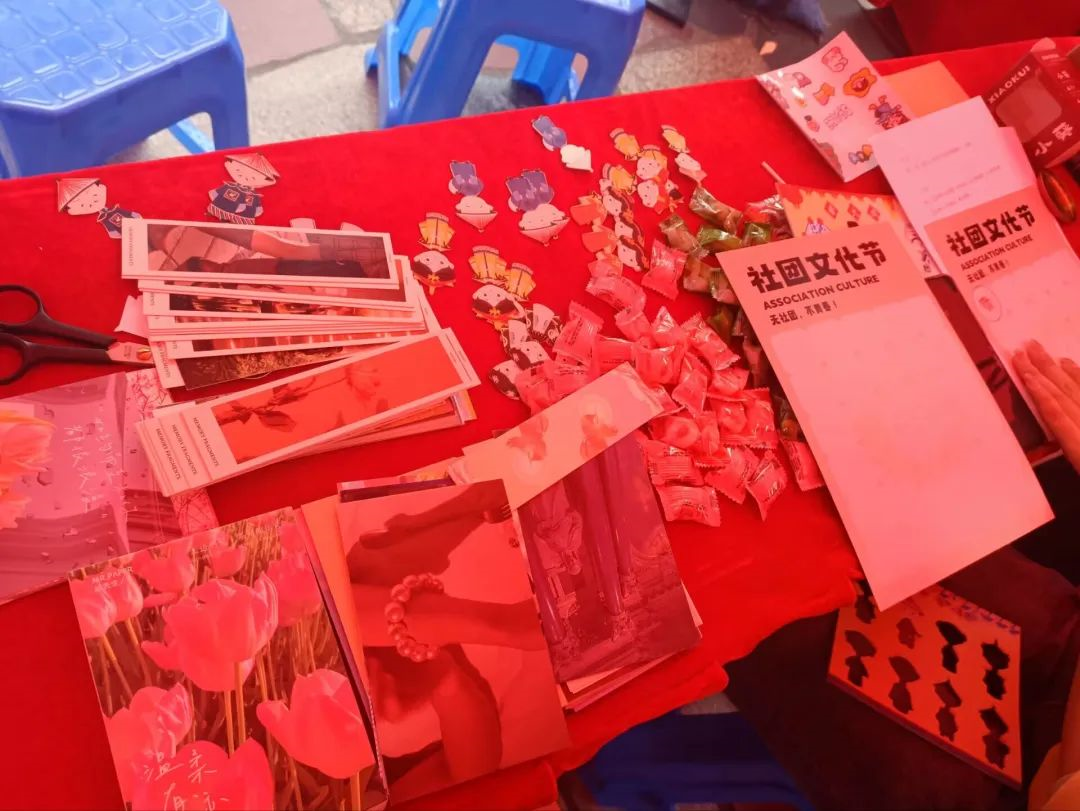 文化节早上八点,协会会长与干事们准点到场精心布置,贴上气球,拉上花绳,挂上明信片,大包小包的礼物陈列于桌,文娱游戏的道具张列于前,满怀期待地开启社团文化节漂协站的大荧幕。气球的点缀,花绳、名信片的装饰都在展现着漂书协会对同学们的热情!