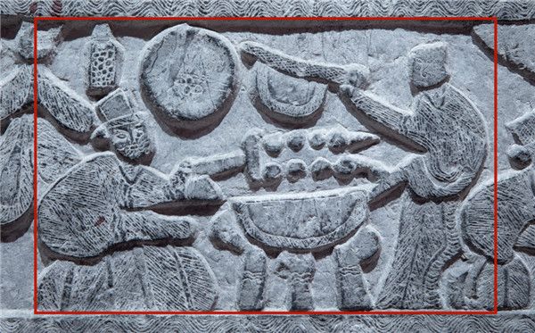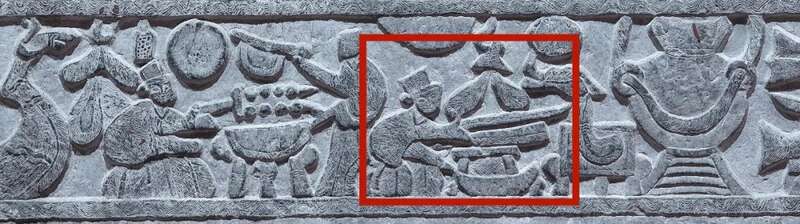例如《庖厨图》中剖鱼的画面是侧面视角
