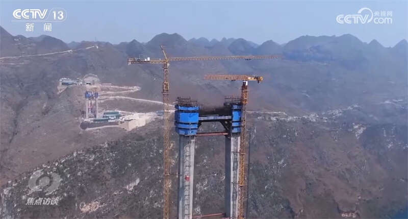 在由高速公路和高速铁路交织而成的“交通平原”上,星罗棋布的桥梁,成为打通交通断点、堵点的关键。这里是位于贵州省关岭县与黔西南州贞丰县交界的花江峡谷,这座高达204米的建筑,是刚刚封顶的花江峡谷大桥主桥塔。2022年1月开建的六安高速花江峡谷大桥,全长2890米,主桥跨径1420米,桥面与水面垂直距离达625米。大桥建成后,将成为山区第一跨、世界最高桥。