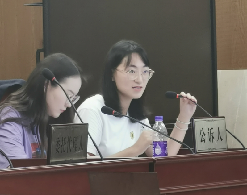 图为受访者在模拟法庭课程中