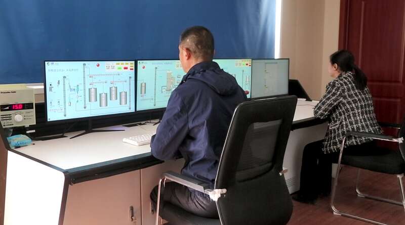 工作人员在操控台前演示粮食烘干流程。大众网供图