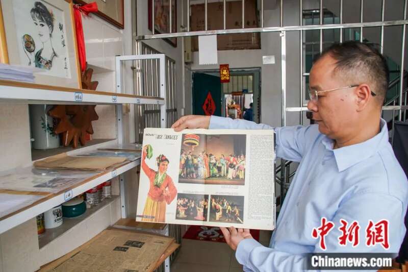 谢中国展示其刘三姐藏品。陈冠言 摄