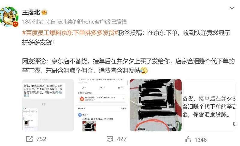 为了让第三方中小商家冲锋陷阵,京东从运营团队到物流系统都进行了整军备战。但和拼多多的本质模式区别尚存在。4月10日,微博大V@王落北爆料,有百度员工发现京东某非自营店铺“套壳”,操作方式是在京东下单商品后,店铺转而去拼多多下单发货,以此赚取3倍的差价。
