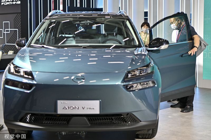 4月15日,广东省广州市,采购商在“新能源及智能网联汽车“展区参观。当日,第133届广交会在广州广交会展馆开幕,“新能源及智能网联汽车”展区为本届广交会新增设展区。