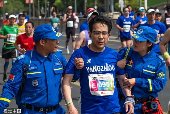 江苏扬州:蓝天救援队全过程参与半程马拉松救助