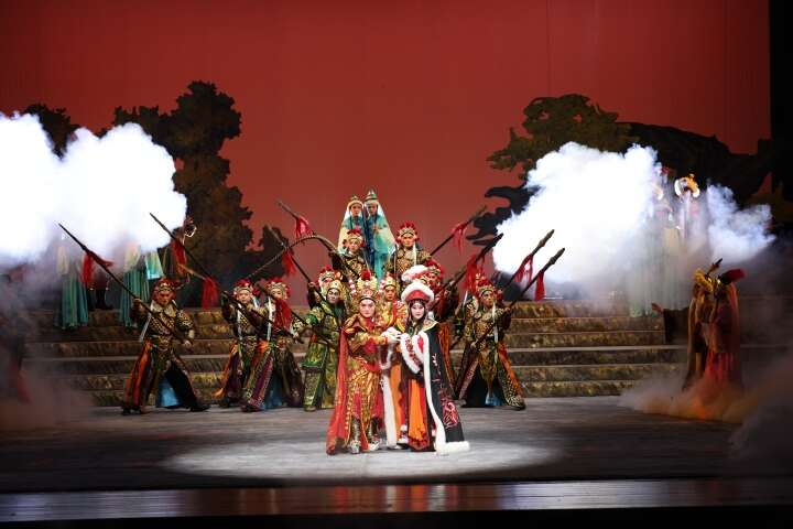 观众们的热情离不开主创团队们的“匠人之心”。据了解,该剧由“梅花奖”“文华奖”获得者、著名京昆武生翁国生担任总导演并领衔主演,浙江艺术职业学院青年戏曲教师耿绿洁担任执行导演,浙江京昆艺术中心青年演员毛泠璎、阿克苏职业技术学院学生艾拜都拉·吐尼亚孜等100多位各民族演员联袂主演。浙阿两地艺术家、演员和柔性援疆人才,通过深入剧目创排,融合艺术创新、专业表演合作、戏曲人才培养等多方面的携手共进,拓展“国粹艺术”与“民族艺术”的全新交流模式,充分体现了浙阿文艺单位、院校以舞台艺术讲好中国故事,以戏曲文化传承历史精神,弘扬爱国主义精神的使命和担当,这也是英雄主义情怀创作的延续,推进民族文化艺术共同繁荣的精彩演绎。
