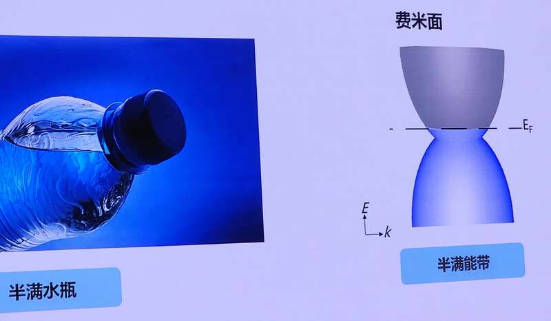 “费米面”是凝聚态物理学中的一个专用词,它是倒易空间中的表面,在零摄氏度下将占据电子态与未占据电子态分开。形象地说,它就像是装在矿泉水瓶中的水的那一层“表面”。普通导体,都具有费米面。而超导体虽然零电阻导电,但却没有费米面。因为超导体中承担导电任务的不是单个电子,而是两个电子组成的库伯对。