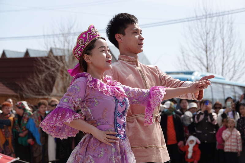 俄罗斯族群众载歌载舞欢庆巴斯克节。吕俊昊/摄