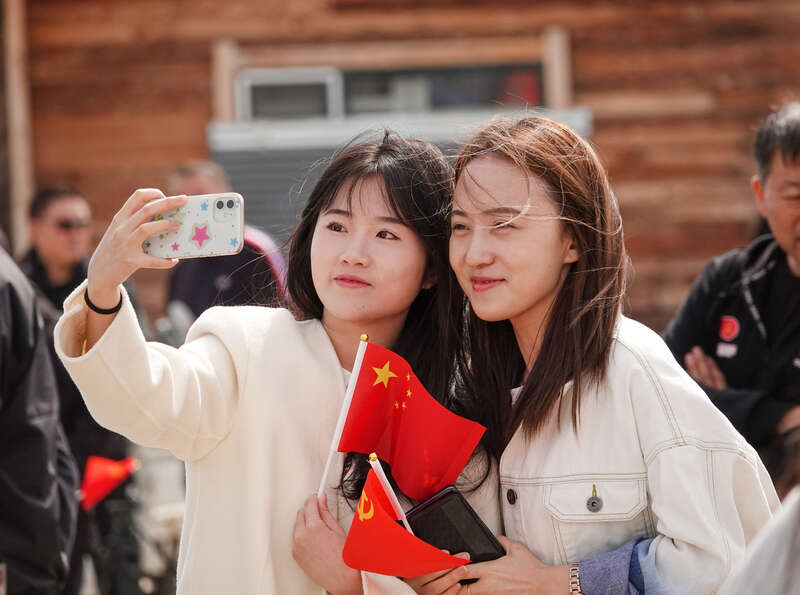 游客在巴斯克节活动现场打卡留念。吕俊昊/摄