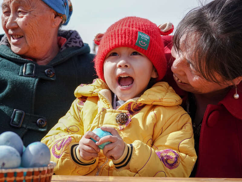 俄罗斯族儿童撞彩蛋庆祝巴斯克节。吕俊昊/摄
