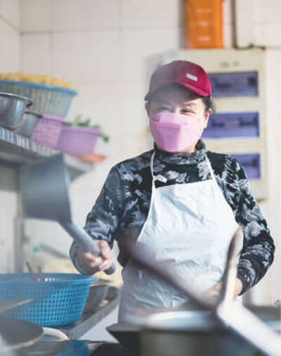 红帽子,粉口罩,蓝底花外套,银灰色斜挎小皮包……早晨6点20分,面店负责人、年过七旬的易慧萍掀开透明门帘,走了进来。