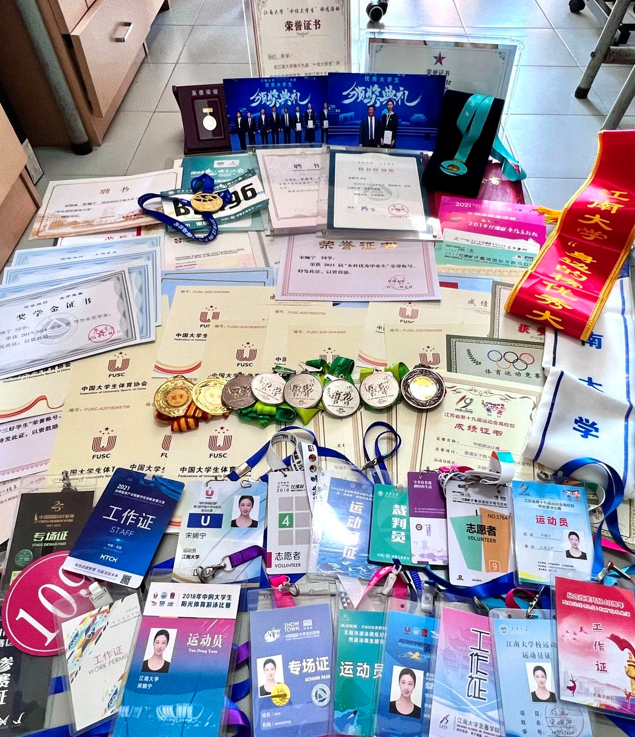 成功背后堆砌的是无尽的汗水与努力。出于自身对游泳的热爱以及为校争光的信念,宋婉宁在加入江南大学游泳队的六年中,累计训练时长达2500余小时,训练量近3000公里,她曾无数次梦见自己站在最高领奖台的场景,这也是她一直以来不懈奋斗和坚持的动力。