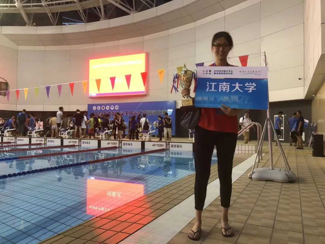 今年的中国大学生阳光体育游泳锦标赛,预赛中的出色发挥让她以第一名的成绩拿到决赛入场券。在决赛前的准备时,她也一直在脑海中模拟比赛过程:如何入水、何时加速、怎样做到精准触壁。站在决赛的出发台上,她卸下了心理负担,抛开杂念,聚焦比赛策略,最终以领先第二名0.24秒的优势夺冠,在比赛首日为江南大学摘得一金!