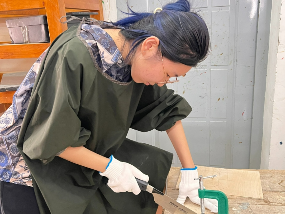 高中就读于美术学校的李和君在绘画方面有一定的基础。校考阶段,她通过相关资料对公共艺术专业进行了解,加上受到《我在故宫修文物》纪录片的熏陶,对传统工艺产生了很大的兴趣,所以选择进入我校美术学院,继续奔赴这一场色彩斑斓的梦想。
