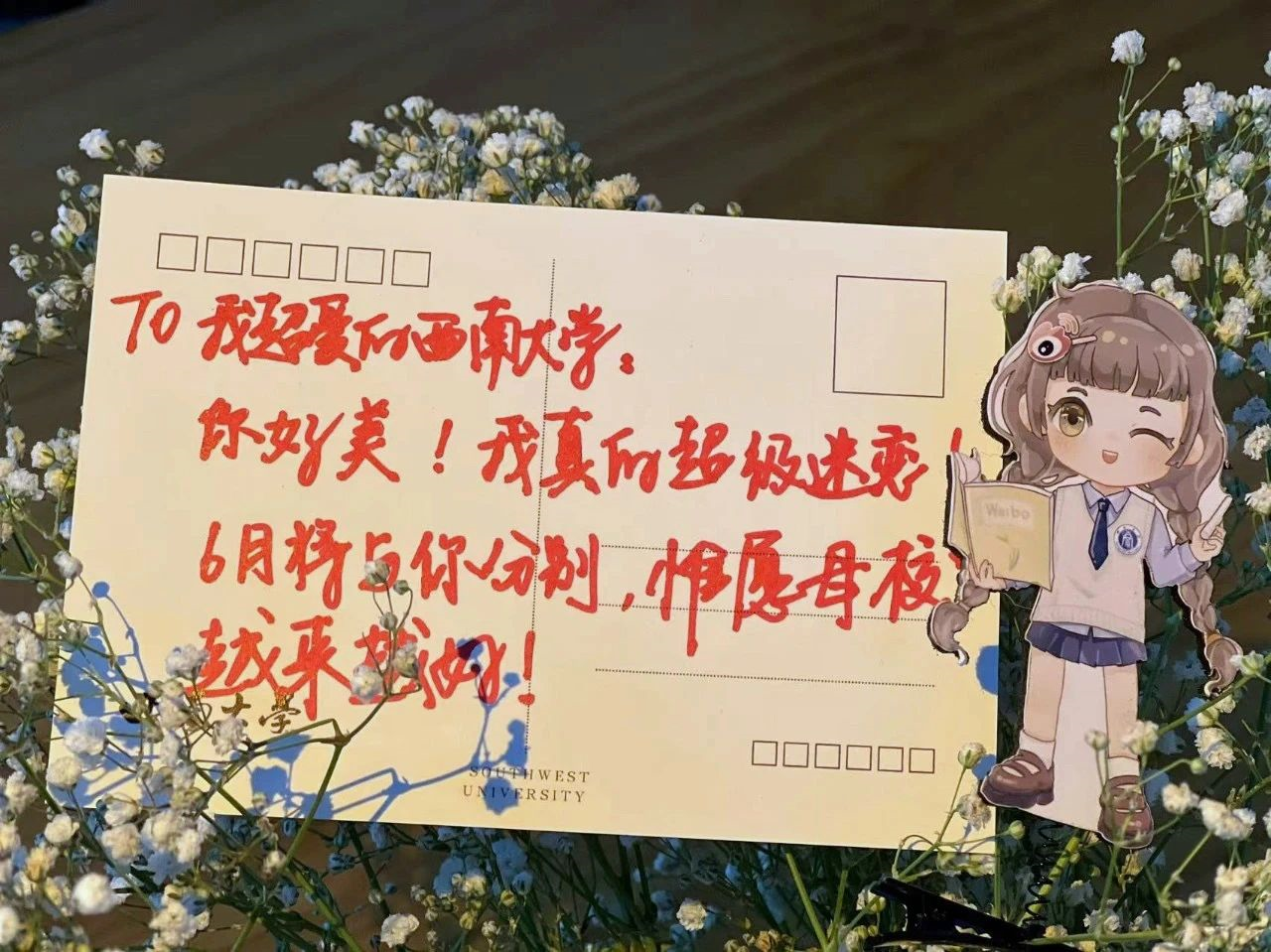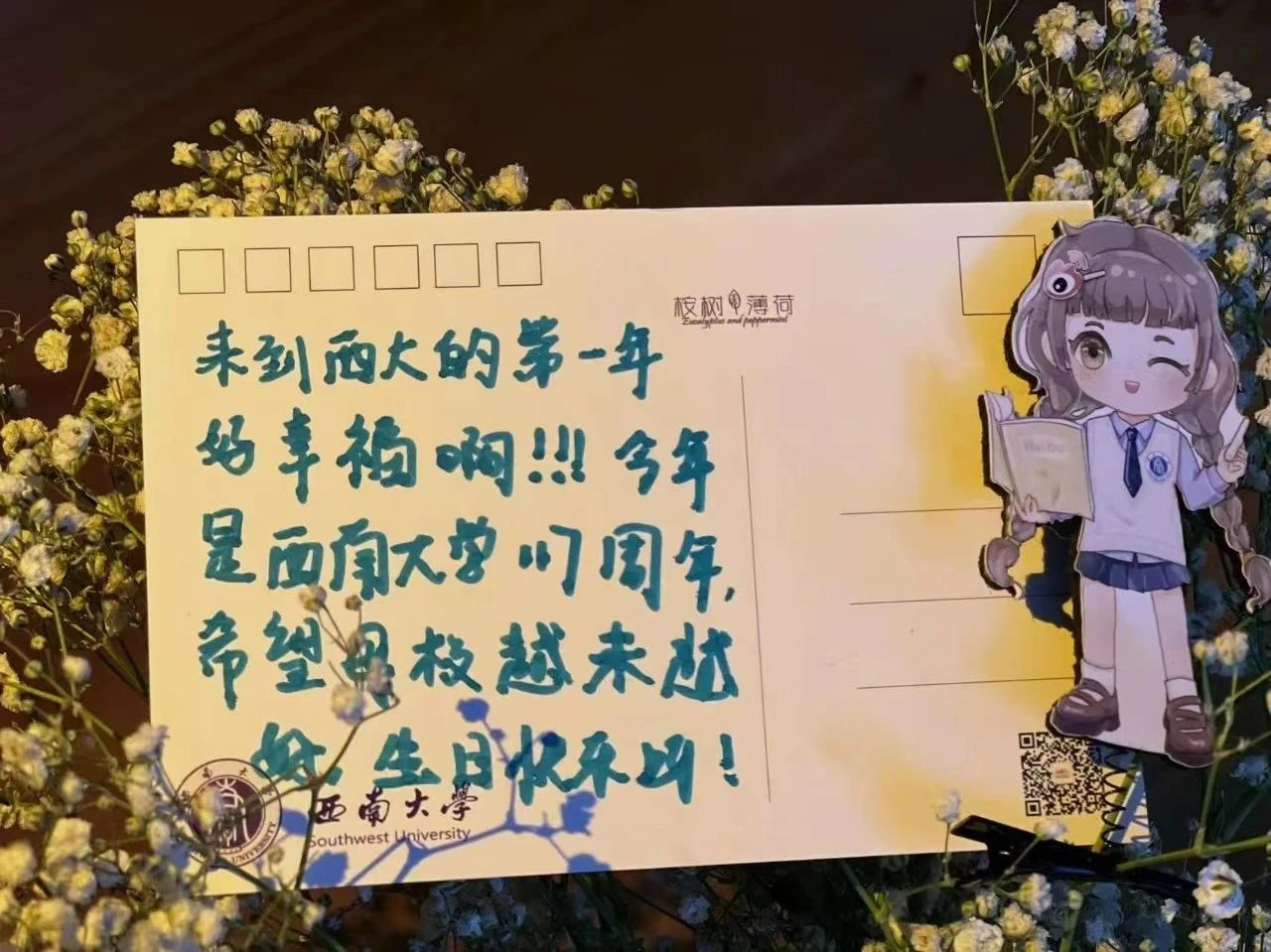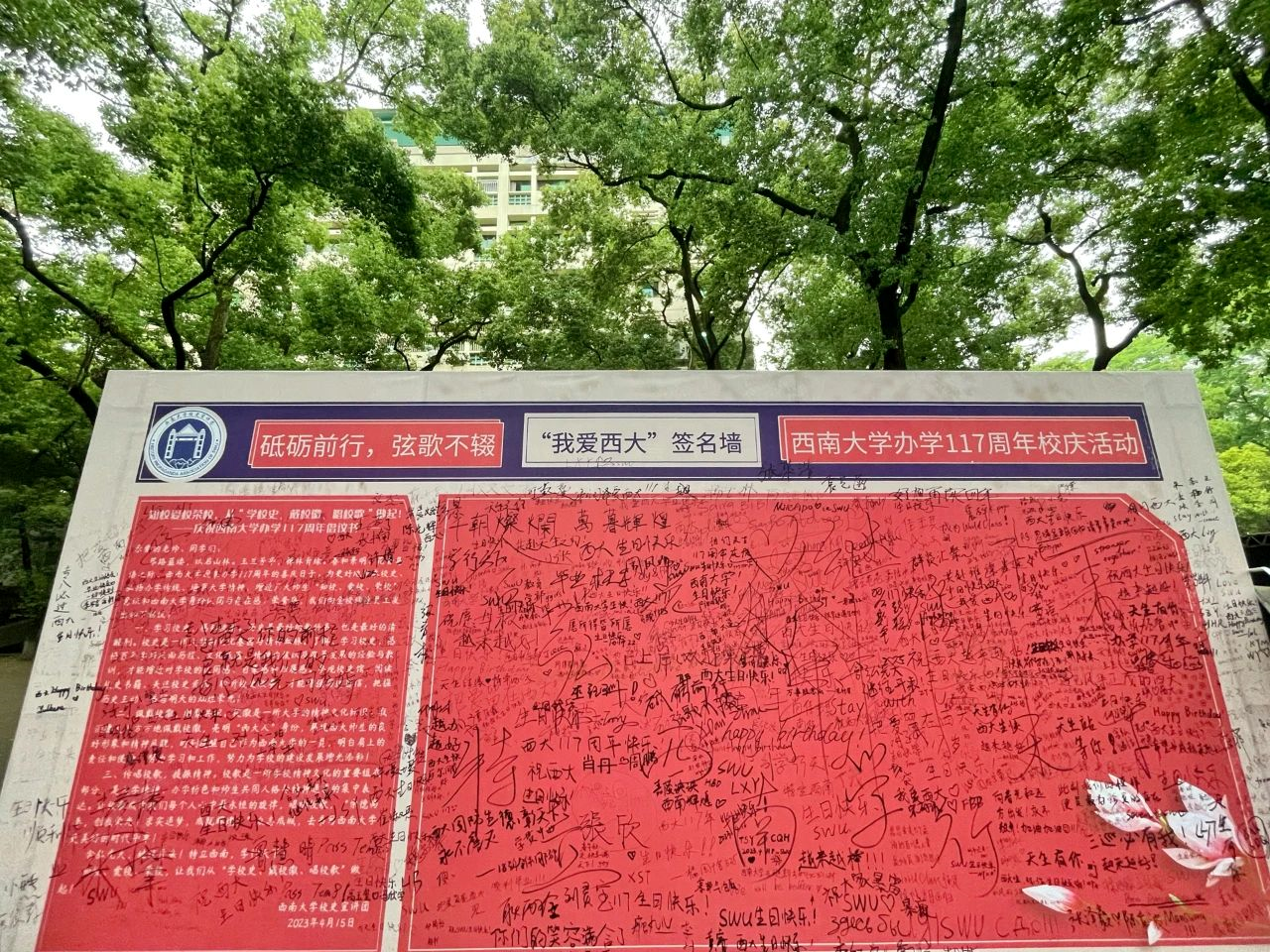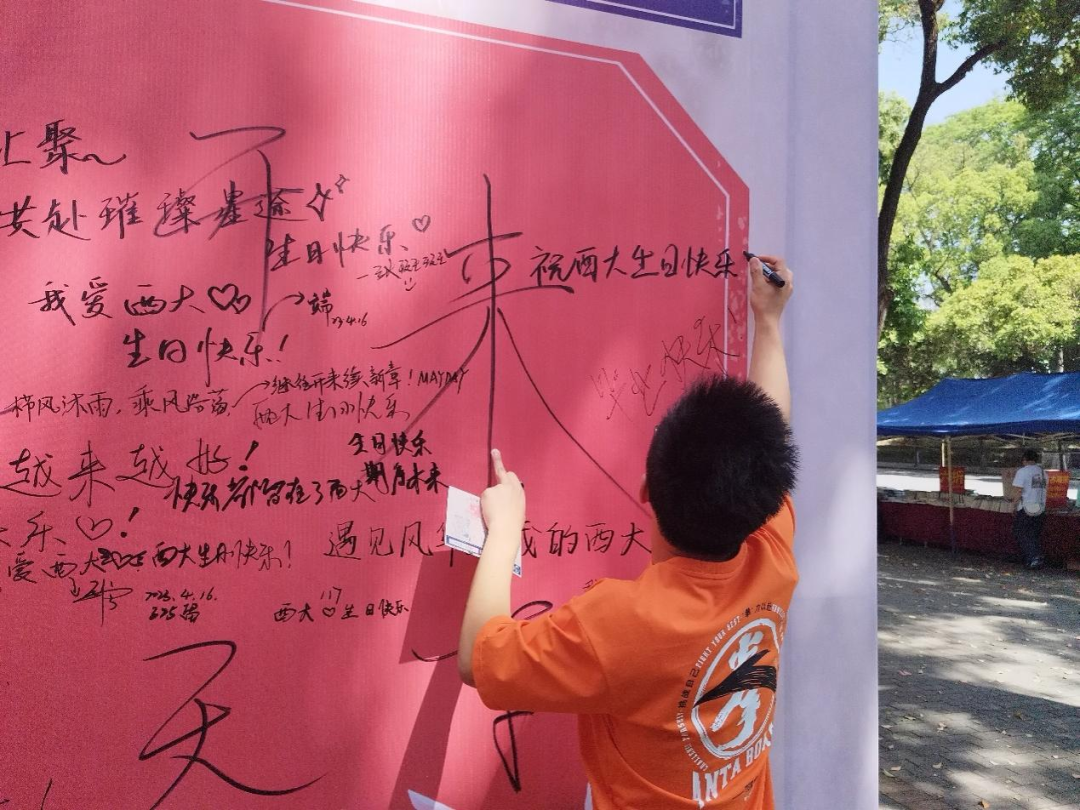 这一天,学校师生们在校园中用自己的方式,持笔写下对西大的款款爱意,他们将心底的深情寄托于纸笔,留下一段段真挚的文字。